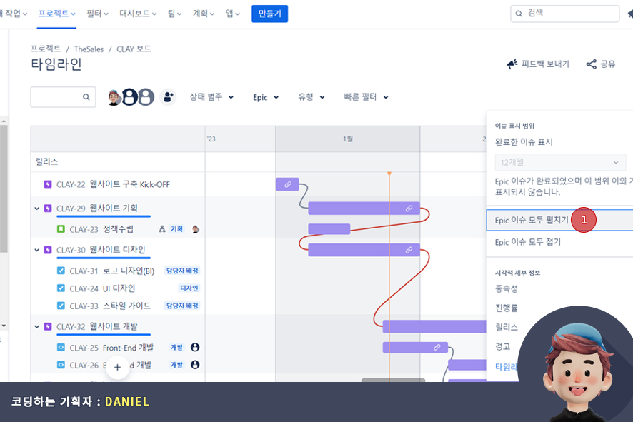 - Epic 이슈 모두 펼치기 : 에픽(epic)의 하위 이슈를 보이게 설정합니다.