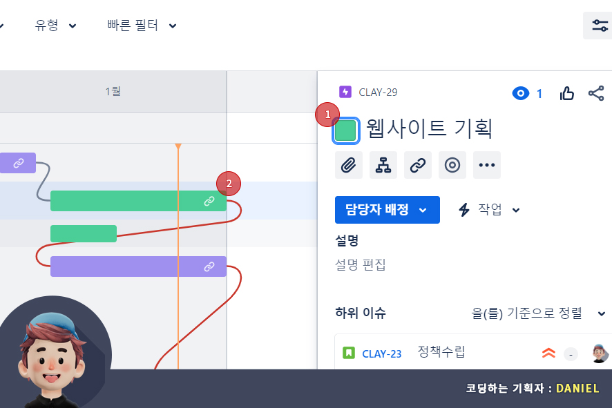 - 종속성 : 이슈의 종속 여부를 볼 수 있습니다.