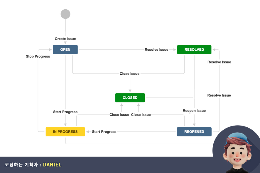 이번 포스팅에서는 지라(JIRA)를 좀 더 효율적으로 사용하기 위한 워크플로우(workflow)설정 방법과 수정 방법 그리고 칸반 보드와 매칭을 시키는 방법에 대해 포스팅 하고자 합니다.