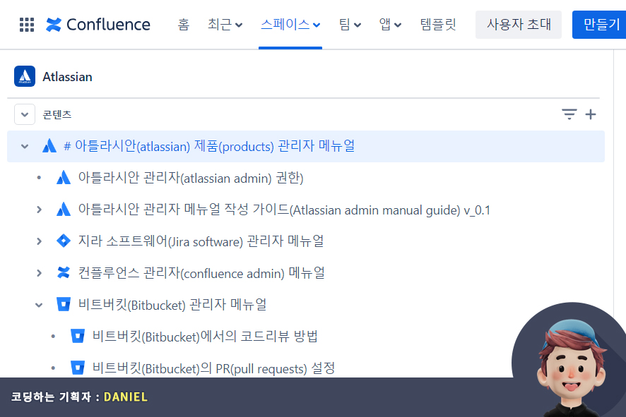 이번 포스팅은 아틀라시안 클라우드 제품(Atlassian cloud product)들의 관리자, 사용자 메뉴얼을 작성하면서 컨플루언스 페이지 앞에 이모지를 등록하여 시각적으로 구분하기 쉽게 구분해서 운영중인 컨플루언스(Confluence) 팁을 공유해 드렸습니다.