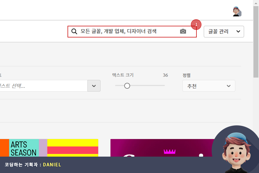이곳에서는 다양한 언어를 찾아서 검색할 수 있으며, 제가 설정해둔 언어(한국어)를 제일 먼저 설정해서 검색할 수 있습니다. - 글꼴 기술