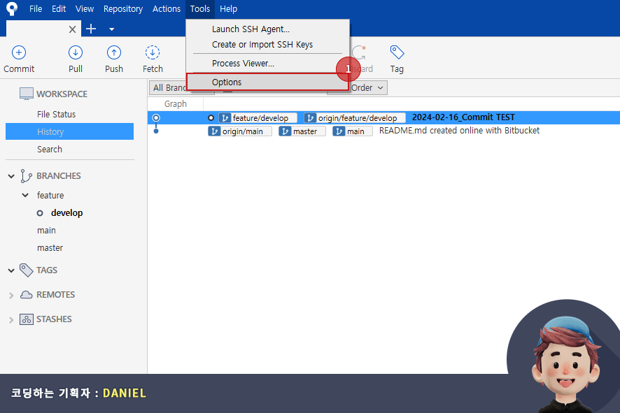 이번 포스팅에서는 소스트리(Sourcetree) UI설정 방법 중 언어 영문 Language English) 설정과 다크모드 테마 설정 그리고 메시지 설정하는 방법에 대해 알아보았습니다. 다음 포스팅에서는 README.md 파일을 비트버킷에서 생성하고, pull, commit, push 테스트를 진행해 보겠습니다.
